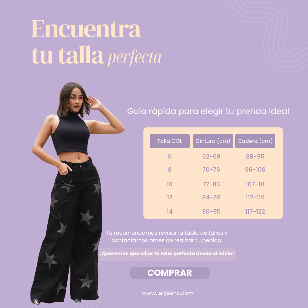 Lo sabemos: las tallas cambian en cada marca. Por eso, en LALÍ trabajamos con una Guía de tallas probada en mujeres reales, no en maniquíes. Si tienes dudas, puedes escribirnos por WhatsApp y una asesora te ayuda en minutos a elegir tu talla exacta. Y si necesitas cambiarlo, lo hacemos sin drama.